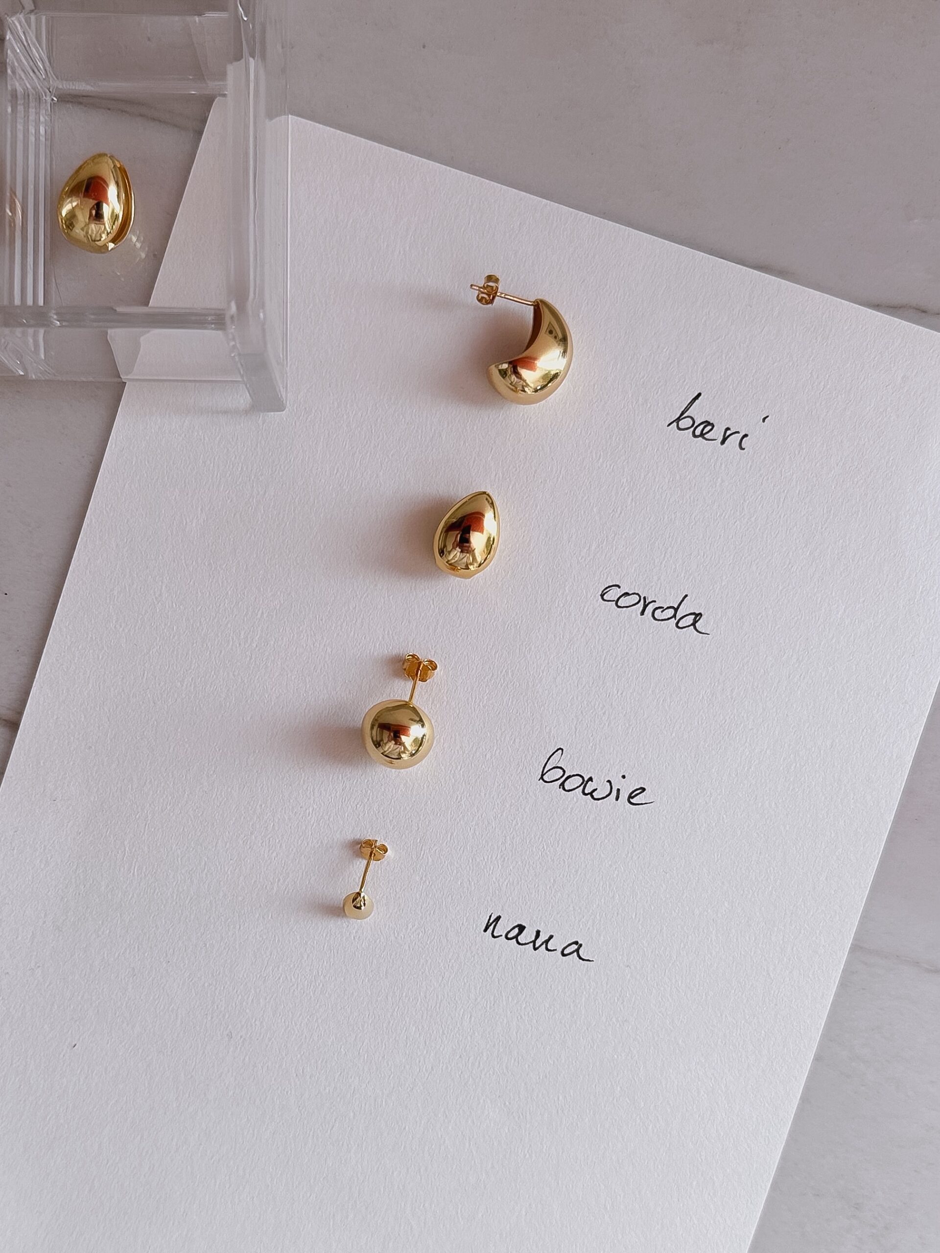 Kolczyki wykonane są w całości ze srebra najwyższej próby 925. Wersja złota powstała kryjąc srebro 24-karatowym złotem.