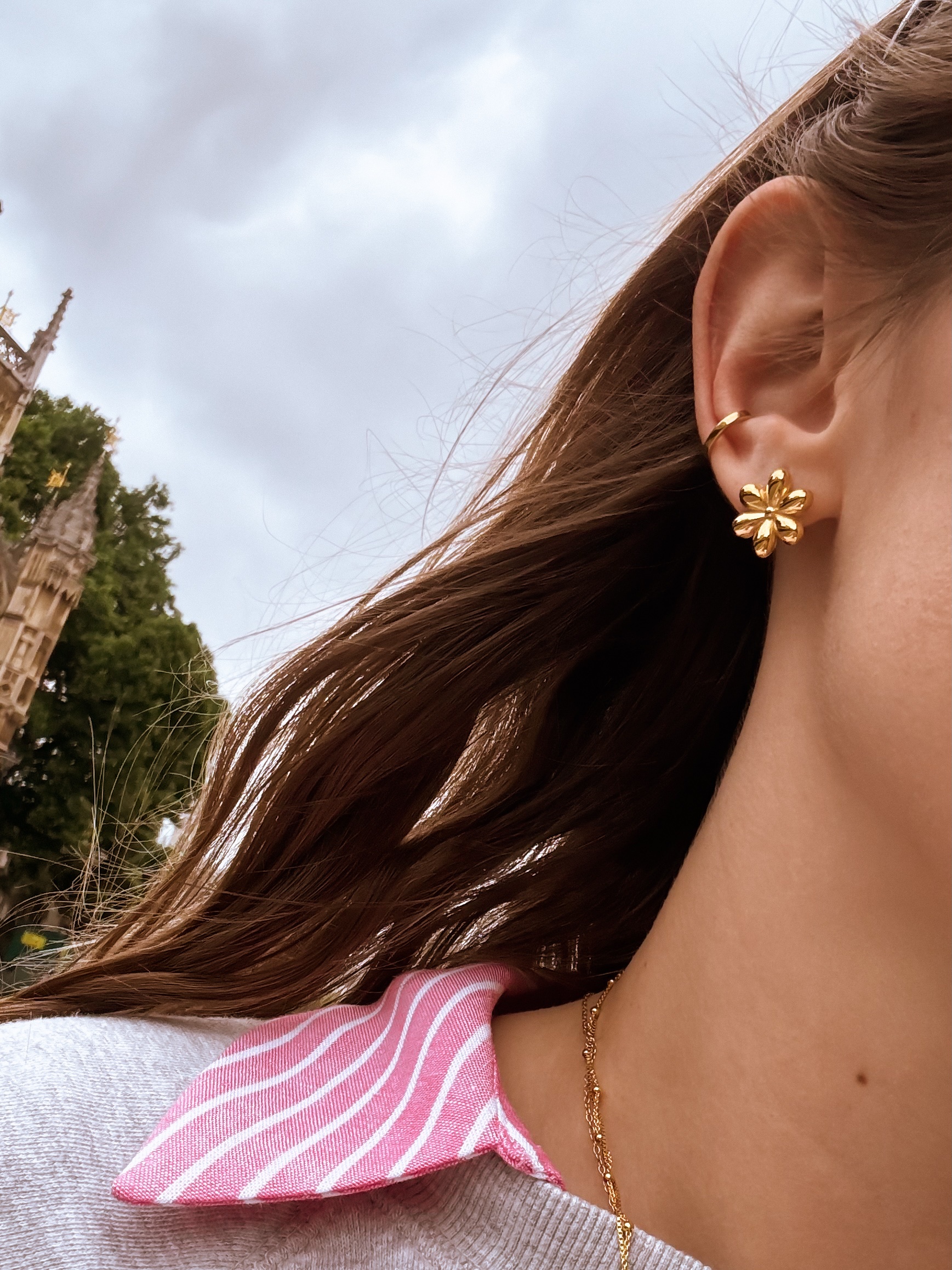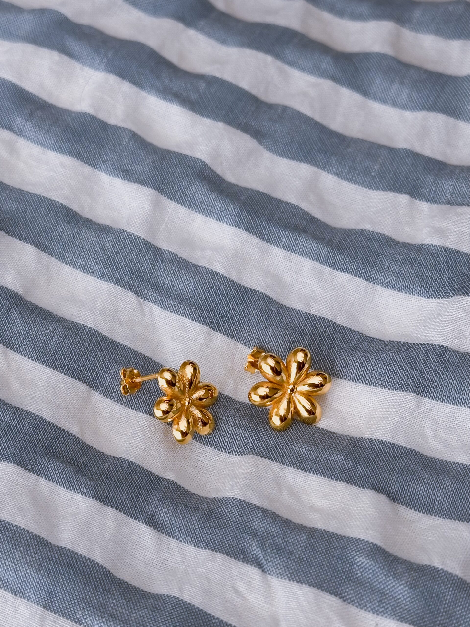 Kolczyki zostały wykonane ze srebra próby 925, następnie pozłocone 24-karatowym złotem.