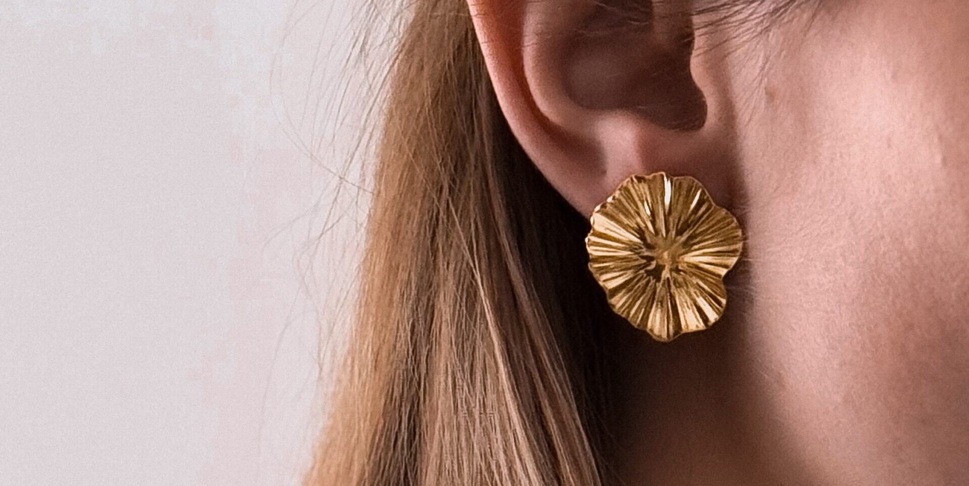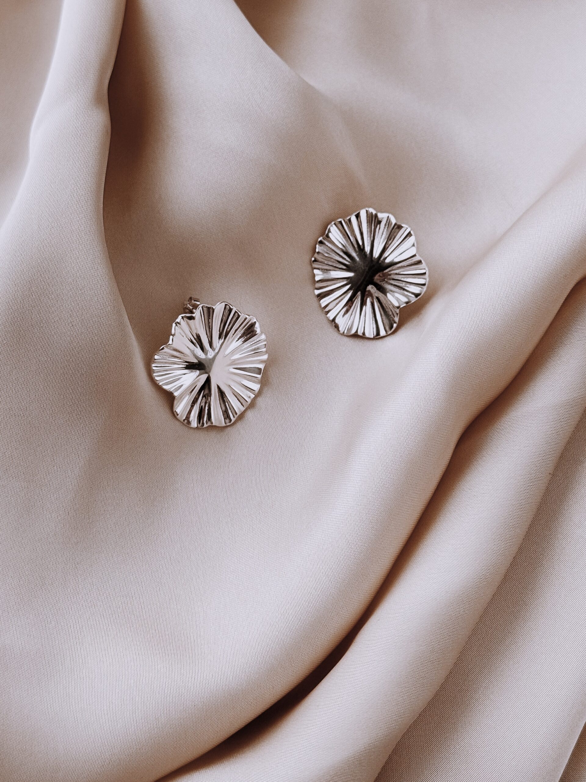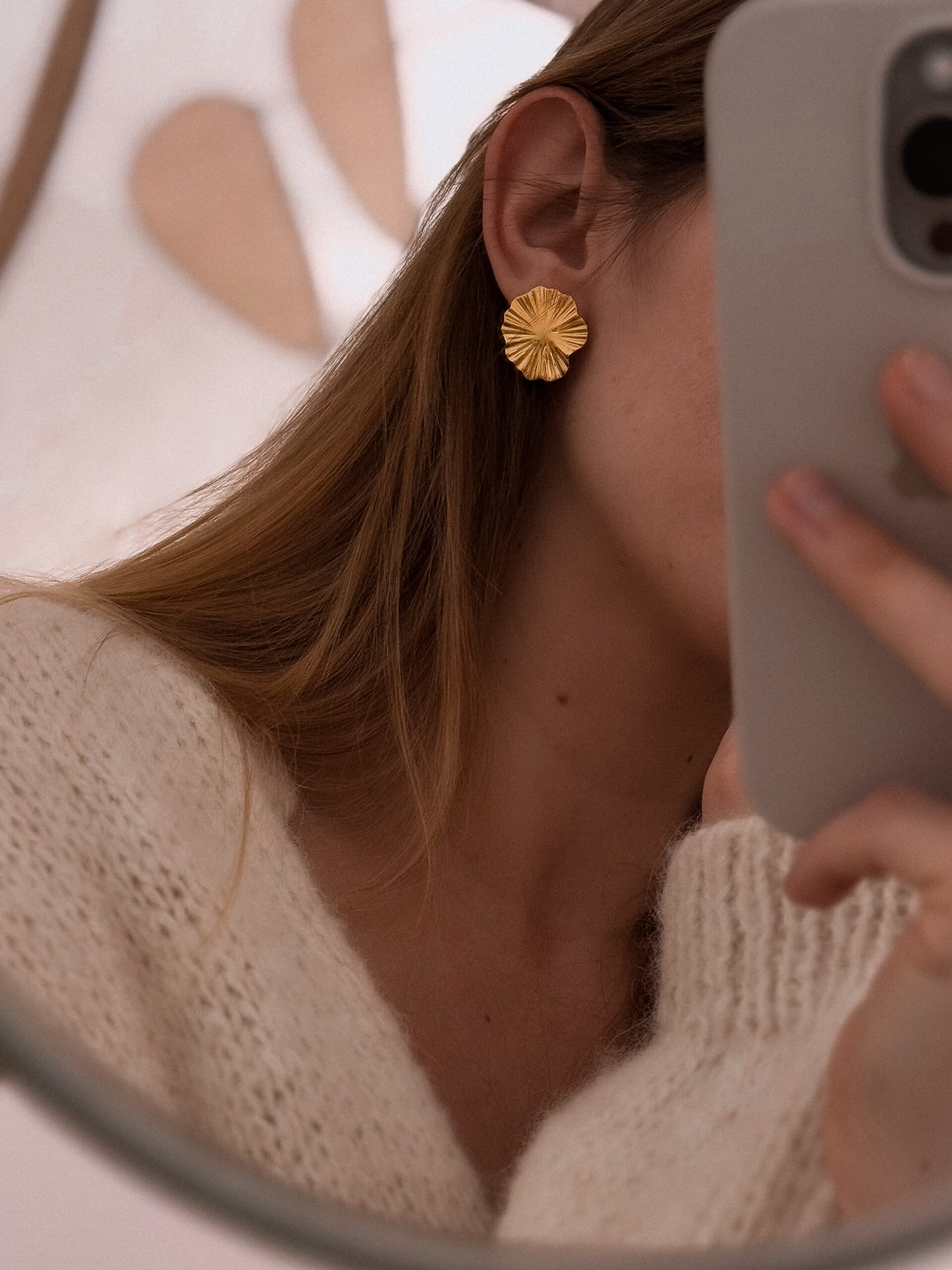 Kolczyki wykonane są w całości ze srebra najwyższej próby 925. Wersja złota powstała kryjąc srebro 24-karatowym złotem.