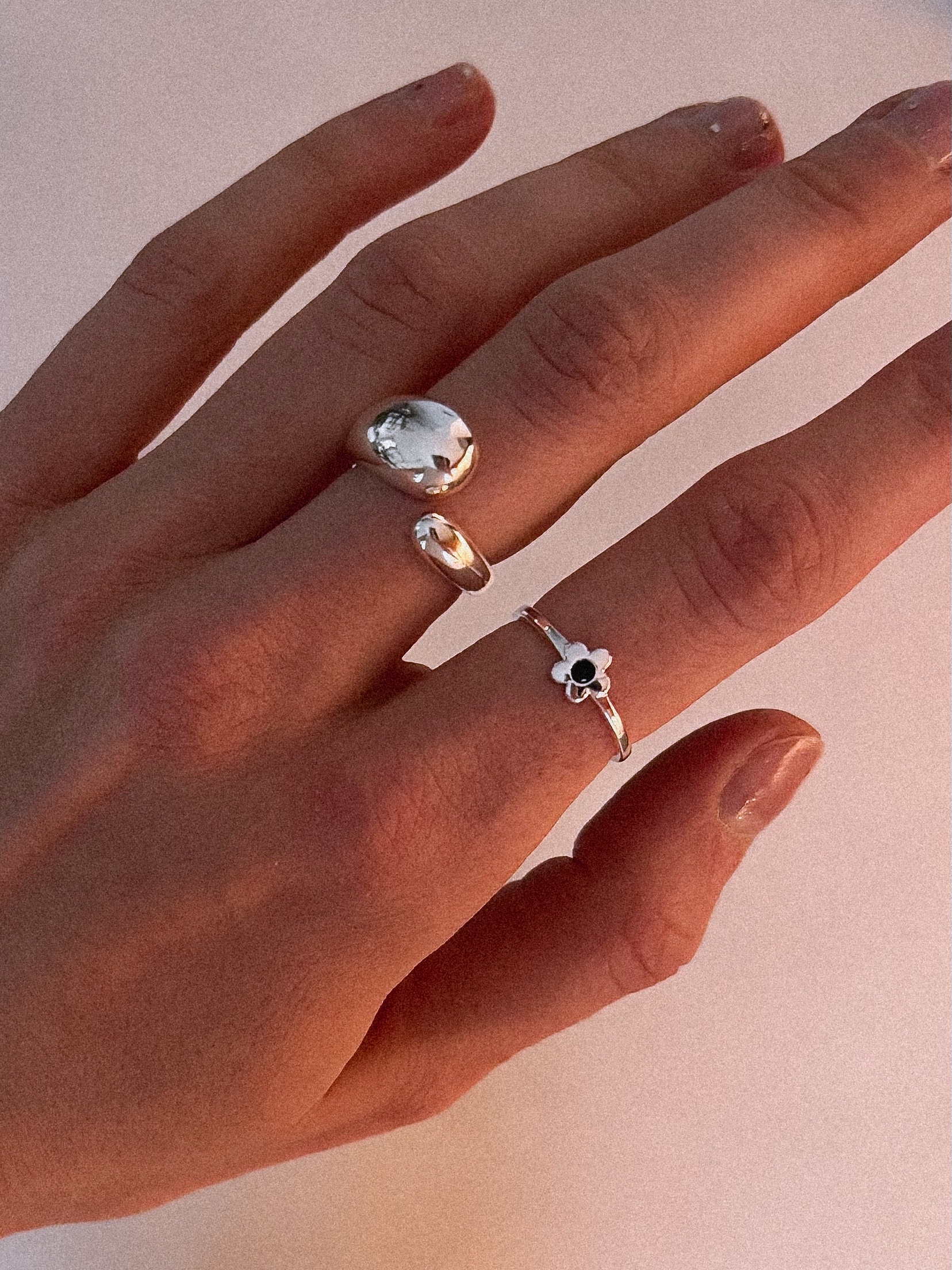 Pierścionek Susu swoją masywnością i oryginalnością dodaje charakteru stylizacjom. Dzięki regulacji od góry pierścionka, możesz kombinować z ułożeniem masywnych końcówek. Zrób to tak jak Tobie się najbardziej podoba 🙂